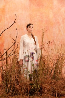 Vestito ricamato e lavorato da Alessia Fregonese di Frogslab, con le illustrazioni di Pamcoc, Alpraz, Giuseppe La selva, Manuela Mapelli, Vanessa @Apotropaike, Elena Beatrice, Susanna Morari, MG Posani, Giuditta Furlan, Veronica Cerri, Andrea Lodetti, Giulia Rosa.